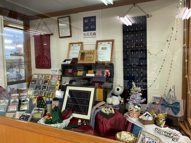 知花花織事業協同組合のショーケースはクリスマスバージョンに変更されてますよ(*´ω`*)